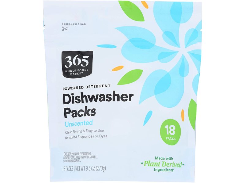 365 Whole Foods Market Diswasher Powered Detergent Packs, Unscented, 9.5 oz/270 g, 18 Ct