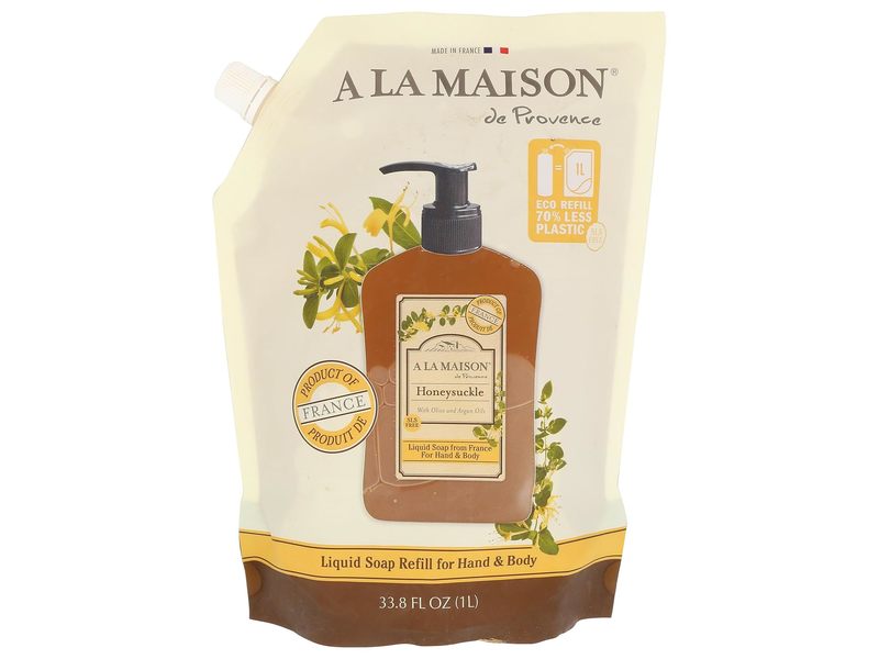 A La Maison De Provence Honeysuckle Hand & Body Liquid Soap, Olive & Argan Oils, 33.8 fl oz/1 L