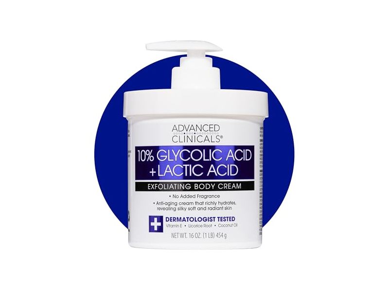 Advanced Clinicals Exfoliating Body Cream, 10% Glycolic Acid + Lactic Acid, 16 oz/454 g