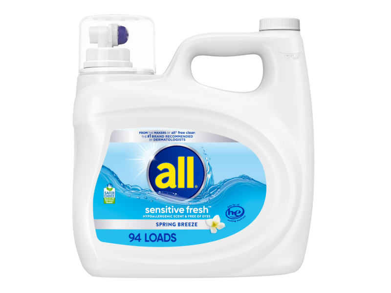 Gentle on skin with a hypoallergenic scent 100% free of dyes From the makers of all free clear, Removes 99% of top everyday and seasonal allergensSpring Breeze scent