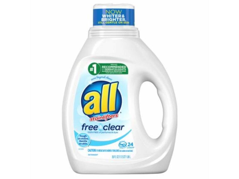 It’s all® free clear, the #1 Recommended detergent brand by dermatologists, allergists and pediatricians for sensitive skin. Safe for the whole family, all® free clear combines the power of Stainlifters™ with the sensitivity of your childhood best friend (she just gets you). No fragrances.