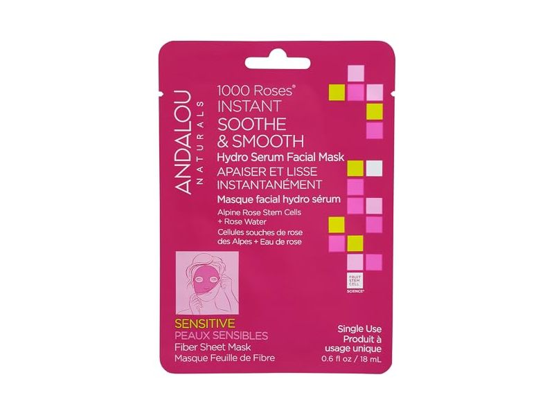 Andalou Naturals 1000 Roses Instant Sooth & Smooth Hydro Serum Facial Mask, 0.6 fl oz/18 mL