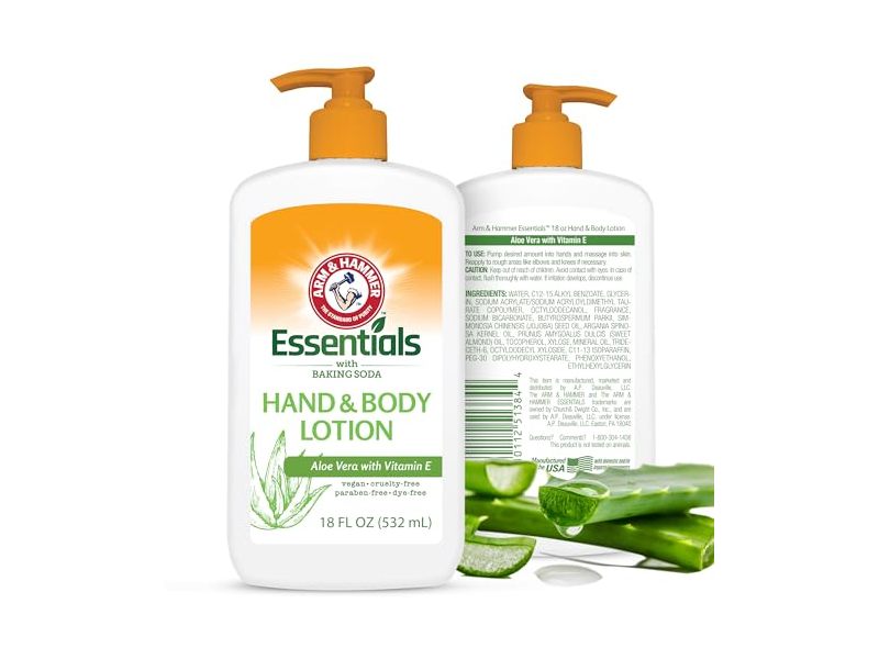 Arm & Hammer Essentials Hand & Body Lotion, Aloe Vera + Vitamin E, 18 fl oz/532 mL