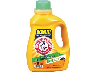 ARM & HAMMER Sensitive Skin Free & Clear liquid laundry detergent has no dyes, perfumes, or preservatives so it's gentle on skin, but powerful on dirt. Special, lower-sudsing formula rinses cleaner and is designed to work in both standard machines and today’s energy conscious High Efficiency (HE) models. Special agents in the detergent trap the soil in the wash water, so it rinses away and doesn't redeposit on your clothes.