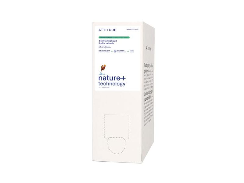 Infused with fruity and tangy notes, ATTITUDE™ dishwashing liquid – Green apple & basil with foaming action eliminates grease and residue.