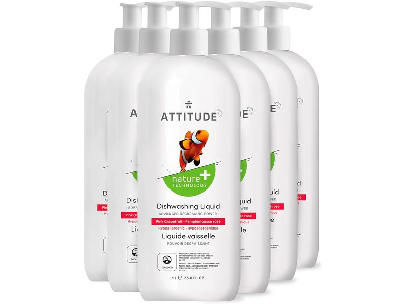 Attitude Liquid Dishwashing, Pink Grapefruit & Pampemousse Rose, 33.8 fl oz/1 L, Pack Of 6