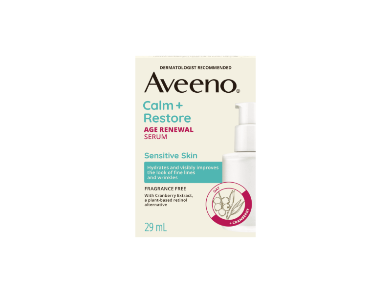 Aveeno Calm + Restore Age Renewal Serum, Oat + Cranberry, 1 fl oz/29 mL