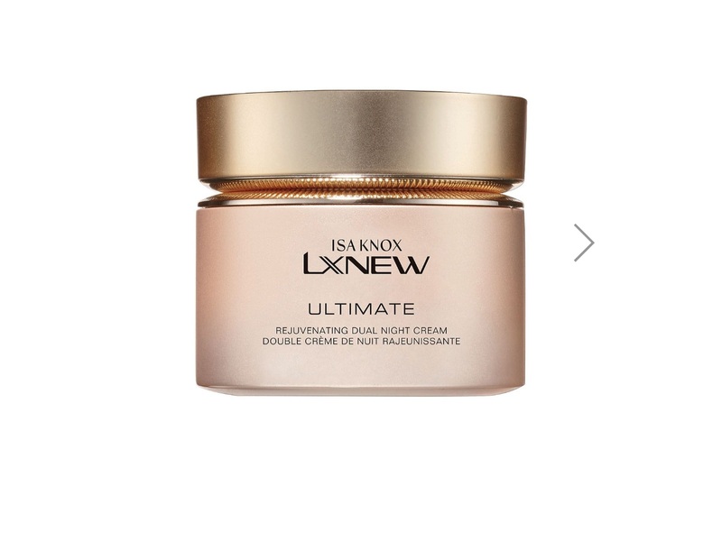 The Avon Isa Knox LXNEW Ultimate Rejuvenating Dual Night Cream is a night cream that is infused with paeonol and macadamia oil. It is a dual-formula cream that features a volume cream with rice bran extract to help visibly plump skin and a white firming cream to visibly tighten and contour. The cream also contains omegas 3, 6, 7, and 9 to help support the skin's moisture barrier.