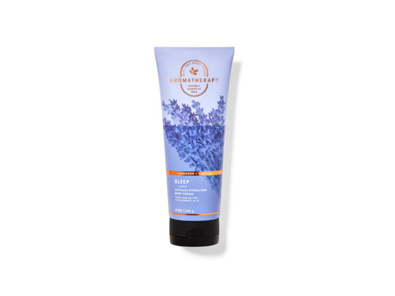 Bath & Body Works Aromatherapy Sleep Lavender Vanilla Body Cream,This deeply nourishing formula is infused with natural essential oils, including calming lavender and comforting vanilla, known to help relax the mind and body.