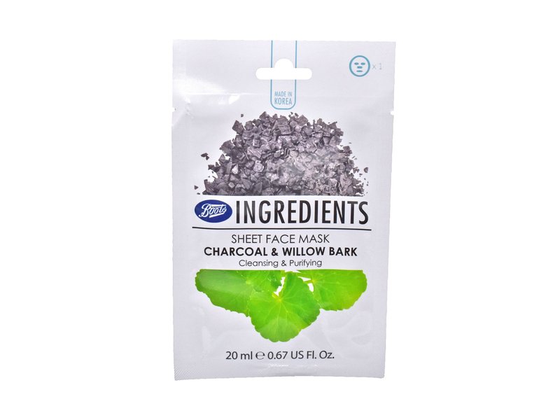 Boots Ingredients Sheet Face Mask, Charcoal & Willow Bark, 1 mask