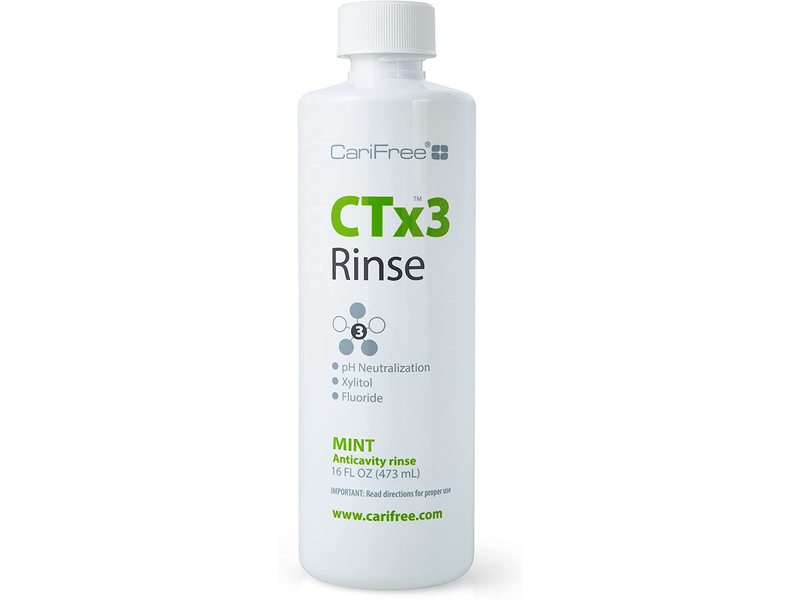 CTx3 Rinse is designed to specifically control oral environmental factors that lead to a cariogenic biofilm. CTx3 Rinse contains xylitol, fluoride (.05% sodium fluoride), and CariFree’s unique, patented pH+ technology to neutralize acidic oral pH. Intended for use by patients to lower caries risk and maintain long-term oral health.