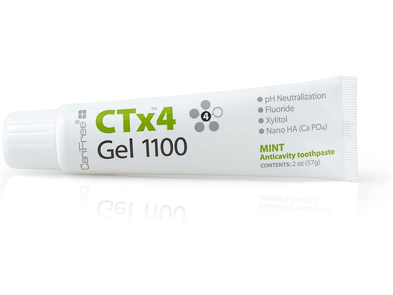 CTx4 Gel 1100 is a low abrasion tooth gel that combines the proven anti-caries benefits of .24% neutral sodium fluoride with bio-available nano hydroxyapatite crystallites, xylitol, and CariFree’s unique, patented pH+ technology.Each box contains one 2 fl oz (57g) tube.