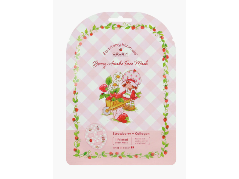 Celavi x Strawberry Shortcake Berry Awake Face Mask, Strawberry + Collagen, 1 Count