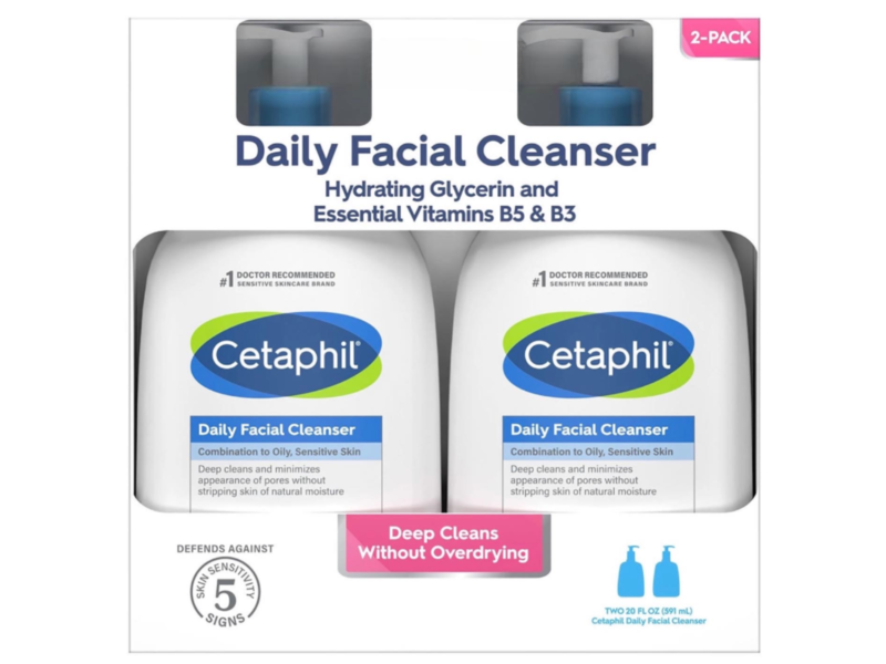 Cetaphil Daily Facial Cleanser, Combination To Oil, Sensitive Skin, 20 fl oz/591 mL, 2 Pack