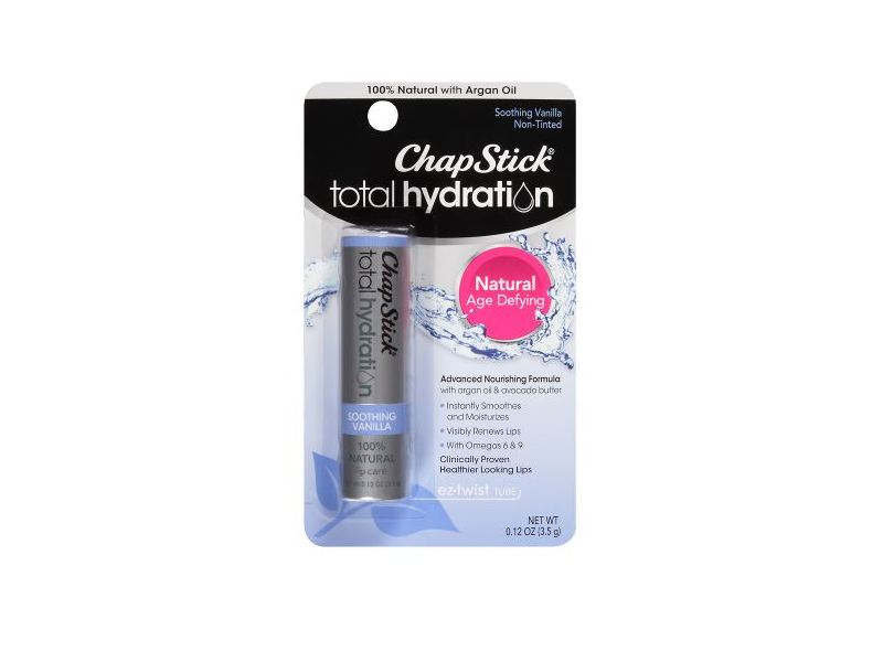 ChapStick Total Hydration 100% Natural is an age defying formula with Argan oil. It is clinically proven to provide healthier and more youthful looking lips.