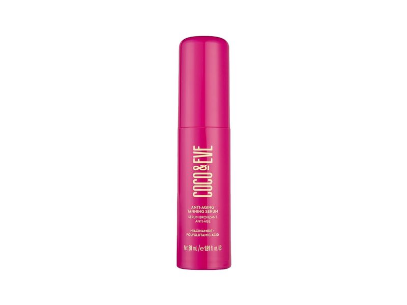 Coco & Eve Anti-Aging Tanning Serum provides a bronzed tan and boost of hydration. Features bronze boosting Vegetan Premium Plus, antioxidants, plus polyglutamtic acid and niacinamide for a youthful glow.