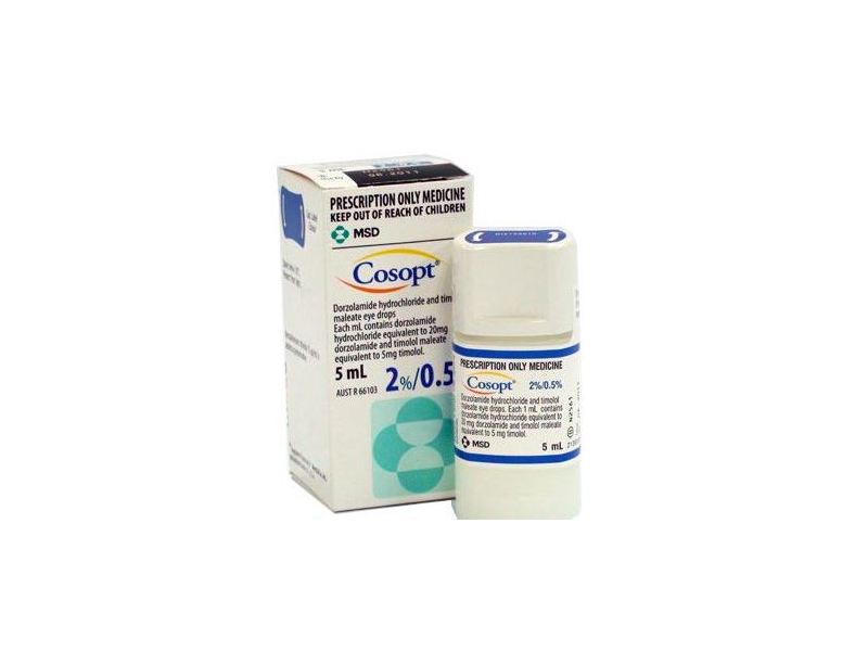 Cosopt (dorzolamide hydrochloride-timolol maleate ophthalmic solution) 2%-0.5%, 5 ml, Merck & Co, Inc(RX)