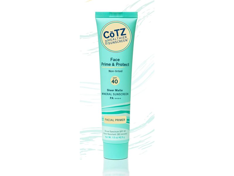 CōTZ® Face Prime & Protect SPF 40 is a sheer mineral sunscreen providing broad spectrum UVA-UVB protection in a silky, translucent primer. Layers beautifully under makeup or can be used alone for a smooth matte finish. Non-tinted formula is ideal for lighter skin tones.