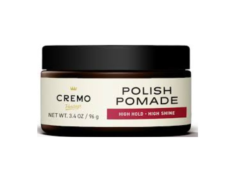 Cremo Barber Grade Hair Styling Polish Pomade gives you a slick, polished look that lasts all dayOffers high hold and high shineUse in wet hair for strong gel-like hold without crispnessWorks best on longer, thicker hair and especially curls