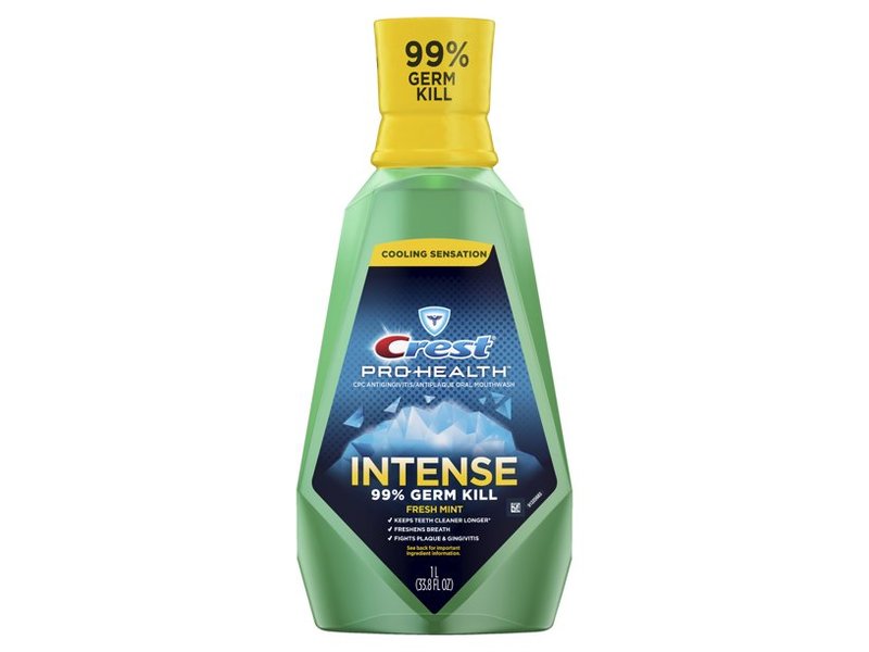 Kills 99% of germs without a strong medicinal taste. Provides an intense feeling to help you know it's working, keep your teeth clean longer, fight plaque and gingivitis, and leave you a cooling sensation with fresh breath.