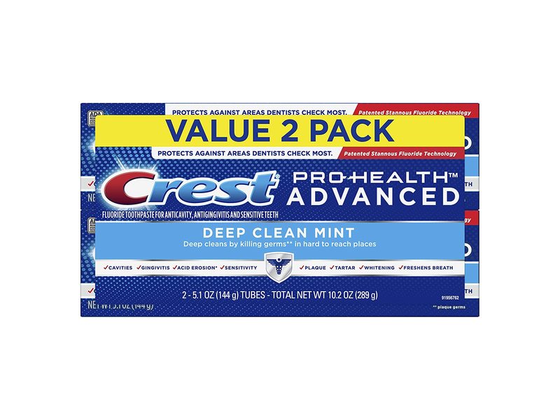 Crest Pro-Health Advanced Fluoride Toothpaste, Deep Clean Mint, 10.2 oz/289 g, 2 Pack