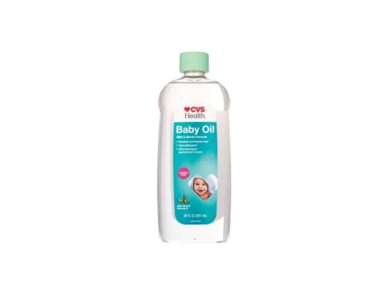 • CVS Health Baby Oil is mild and gentle, perfect for use after a bath or shower to help skin retain moisture. Aloe vera soothes and vitamin E conditions dry skin.