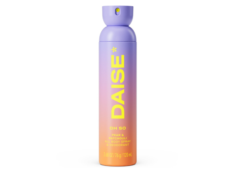 DAISE Oh So Daise All Body Spray & Deodorant is designed to keep you feeling confident, cool and cute, with a sweet pear and patchouli scent that can go everywhere.