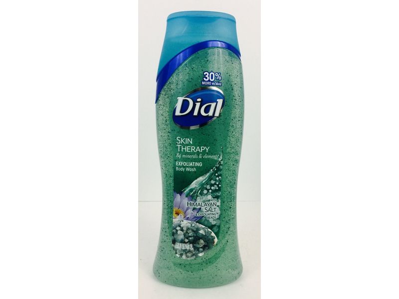 Dial Skin Therapy Exfoliating Body Wash with Himalayan Salt and Exfoliating Beads gently removed dull, dry surface skin to reveal healthier, smoother skin.