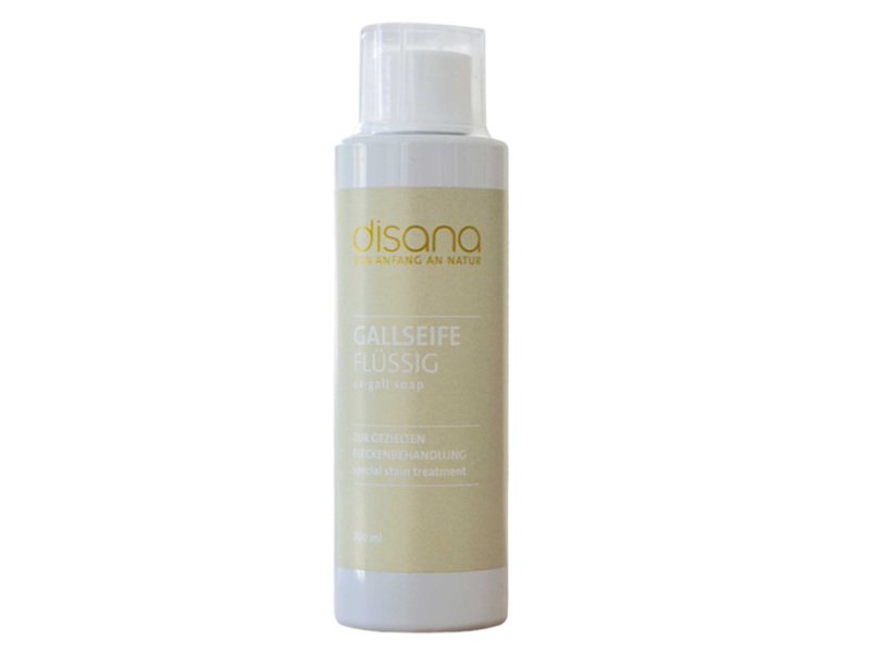 Disana Ox-Gall Soap Liquid ox-gall soap composed of raw materials from organic farming. Treat tenacious dry stains with ox-gall soap, then wash out as usual.