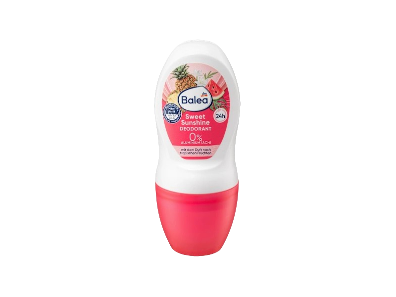 Balea's Sweet Sunshine roll-on deodorant enchants the senses with a fruity tropical fragrance.