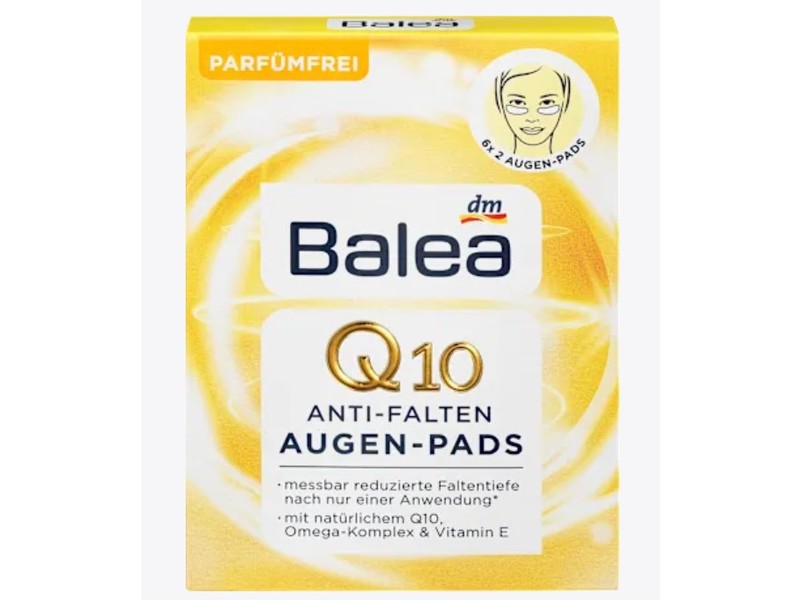 Balea Q10 anti-wrinkle eye pads revitalize and gently smooth your skin. The valuable combination of active ingredients, Q10 and omega fatty acids from macadamia oil, ensure that the skin feels noticeably smooth and supple. They provide immediate and long-lasting moisture and refresh with a pleasant cooling effect. Expression lines and the depth of wrinkles are also reduced.