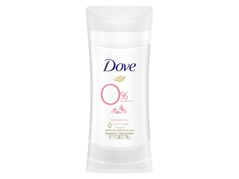 Dove 0% Aluminum Deodorant, Stick Rose Petals, 2.6 oz/74 g