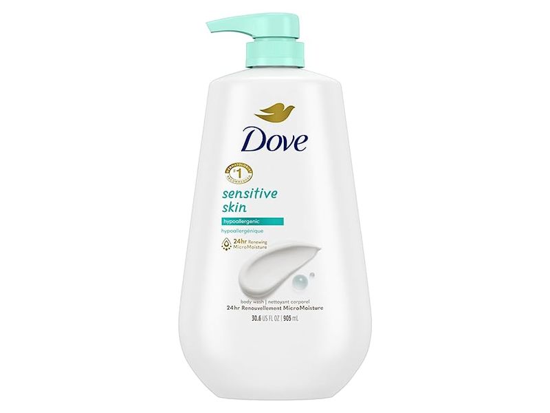 • 24HR RENEWING MICROMOISTURE: Dove Hypoallergenic Sensitive Skin Body Wash gently cleanses and nourishes the skin, leaving it renewed and healthy-looking for 24 hours.