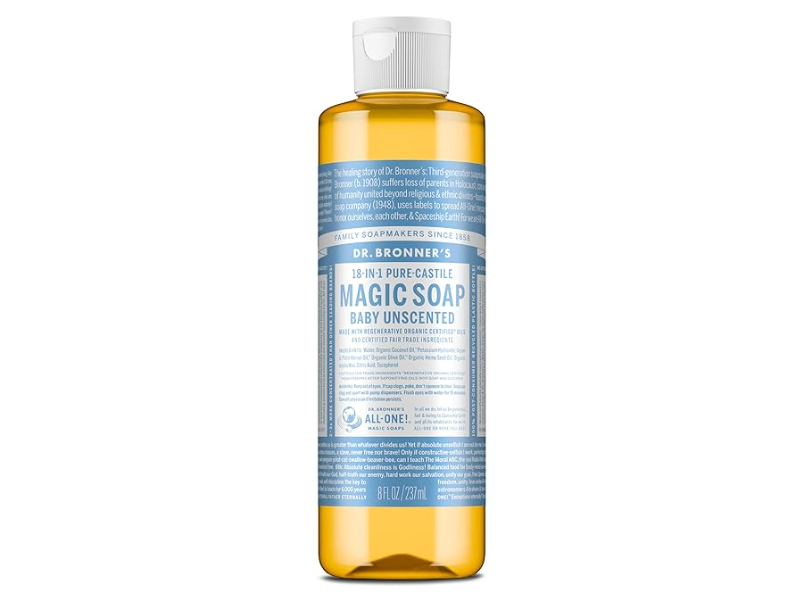 Dr. Bronner's Pure-Castile Magic Liquid Soap, Baby Unscented, 8 fl oz/237 mL