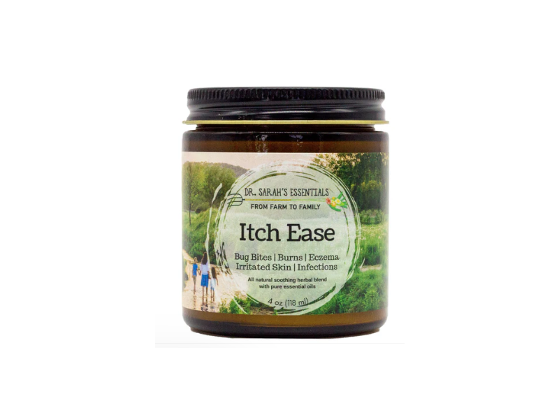 Itch Ease is great for eczema, irritated skin, burns, bug bites, and infections. This is an all-natural soothing herbal blend with therapeutic essential oils.