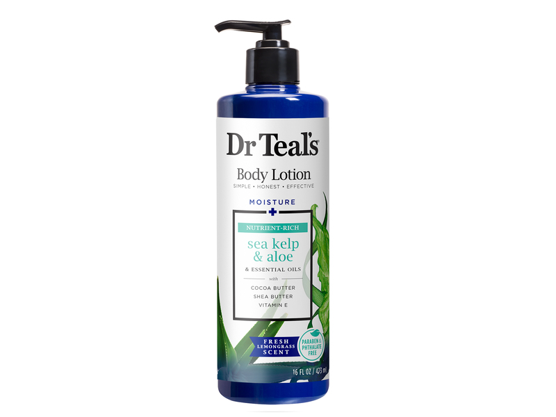 • Formulated with nutrient-rich Sea Kelp and Aloe, refreshing Lemongrass and Orange Essential Oils, skin-softening Shea Butter, moisturizing Cocoa Butter, and protective Vitamin E. Fresh Lemongrass scen with Use daily to moisturize and promote healthier looking skin. Ideal for use after soaking in Dr Teal's Epsom Salt Soaking Solution and Foaming Bath.