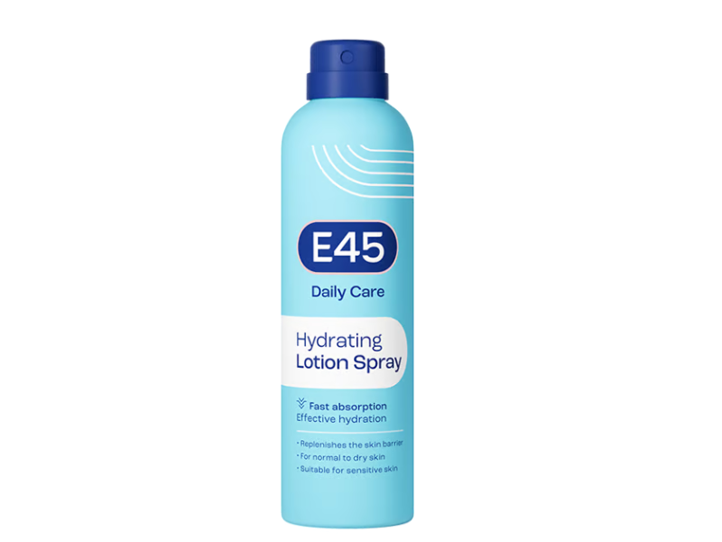 E45 fast-acting spray moisturiser helps to repair dry and sensitive skin and is a quick and easy way for instant hydration. It has been specially designed to intensely moisturise with a formula that is clinically proven to lock in moisture. Moisturiser will help keep your skin looking