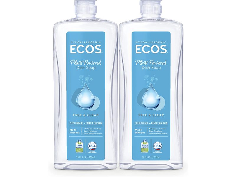 Earth Friendly ECOS Dishmate Dish Liquid, Free & Clear, 25 fl oz/739 mL (Pack of 2)
