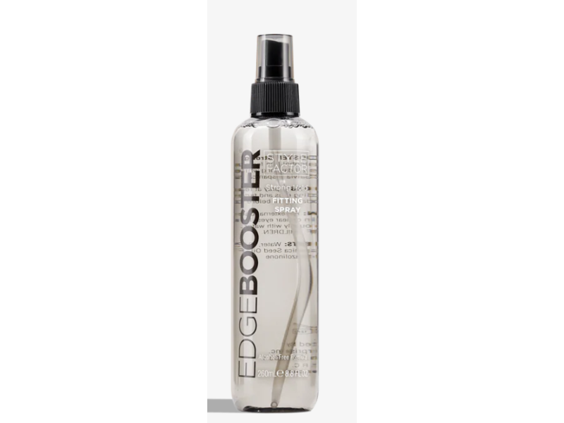Edge Booster Strong Hold Fitting Spray's alcohol-free formula firmly holds your style all day long while nourishing your hair with Salvia Hispanica seed oil.