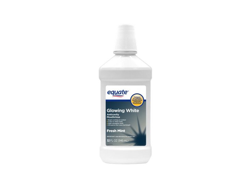Enjoy 5 days to whiter teeth by using Equate Fresh Mint Glowing White Anticavity Mouthrinse. This anticatvity mouthrinse begins working on contact. It kills germs that cause bad breath as well as safely whitens teeth.