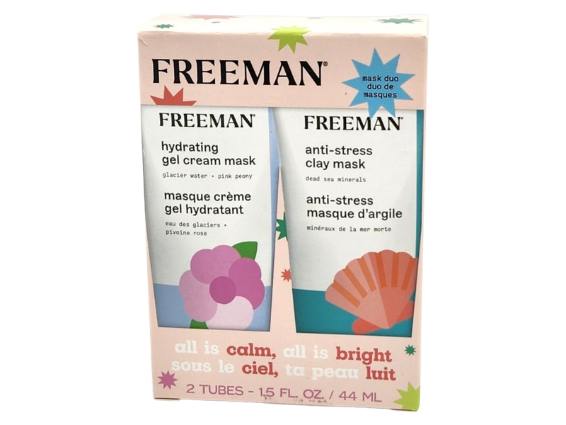 Freeman Beauty Hydrating Gel Cream Mask & Anti Stress Clay Mask Set, Glacier Water + Pink Peony & Dead Sea Minerals, 1.5 fl oz/44 mL