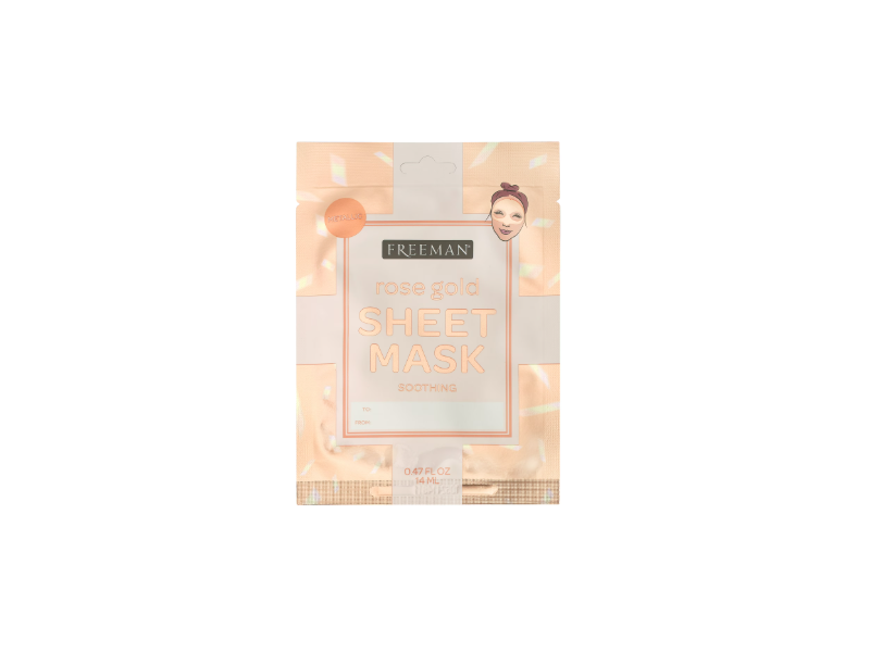 Freeman Soothing Rose Gold Sheet Mask. Perfect for hanging on your holiday tree or using as a stocker stuffer.
