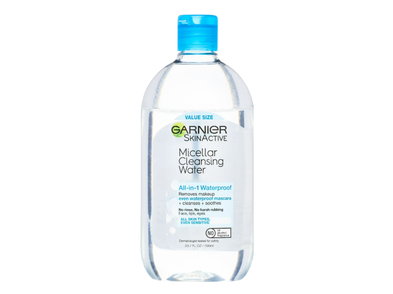 Garnier Waterproof Micellar Cleansing Water is a facial cleanser that soothes and refreshes skin while removing even stubborn waterproof and long-wear makeup in just one step
