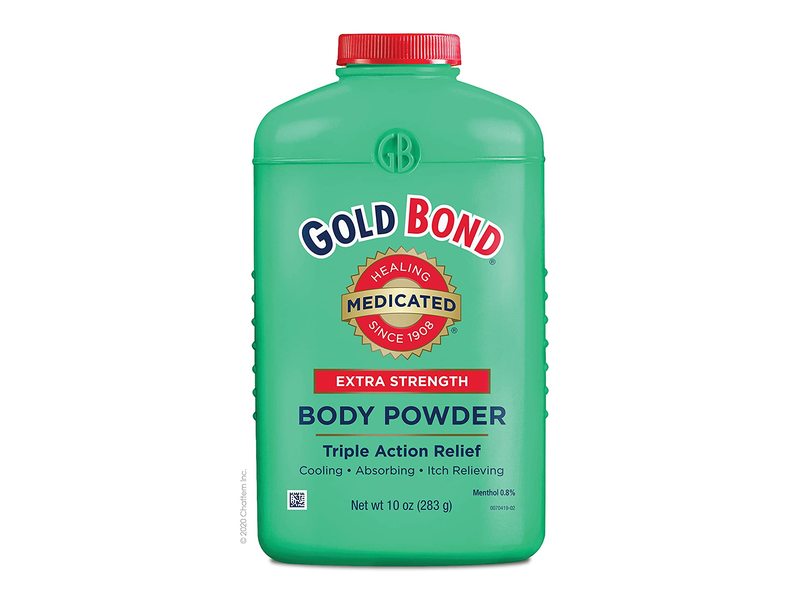 Stay cool, dry, and comfortable with cornstarch-based Gold Bond® Medicated Extra Strength Body Powder. Achieve all over itch relief with menthol and temporarily relieve pain and itching associated with minor cuts and scrapes, minor burns including sunburn, insect bites, and other minor skin irritations.