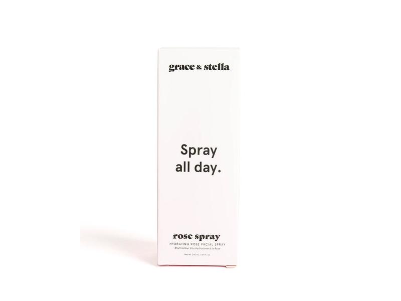 Grace & Stella's Rose Facial Spray helps keep skin fresh and moisturized. It is also great to use as a skin refresher throughout the day. Made without parabens, dyes, silicones, and sulfates.