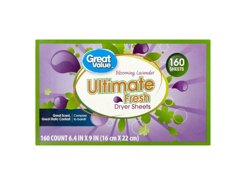 Great Value Ultimate Fresh Dryer Sheets, Blooming Lavender, 160 Count