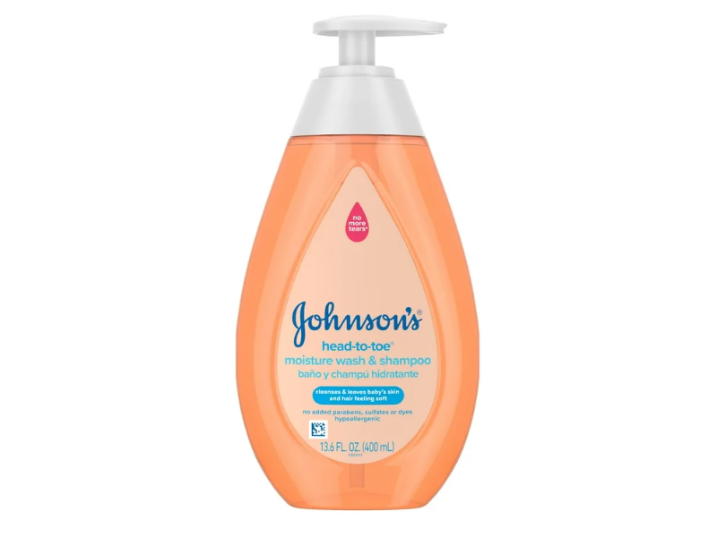 Johnson's Baby Head-to-Toe Moisture Wash & Shampoo to gently cleanse delicate baby skin & hair. 2-in-1 cleanser with a No More Tears formula that is as gentle & mild to the eyes as pure water
