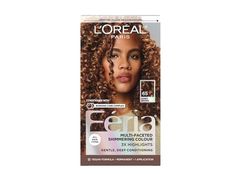 L’Oreal Paris Feria Multi-Faceted Shimmering Permanent Color, 65 Honey Brown, 1 Application