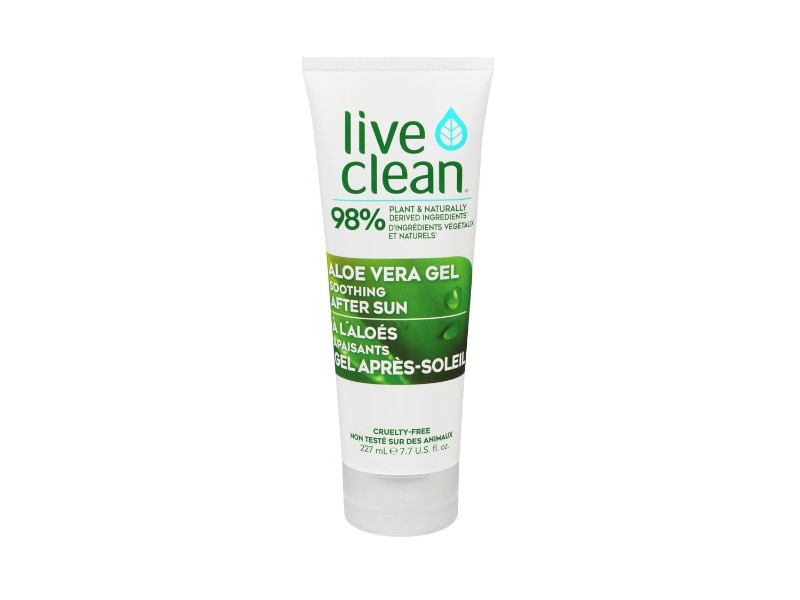Live Clean After Sun Aloe Vera Gel is derived from the natural moisturizing power of 98% aloe vera. Infused with certified organic arnica extract and Australian tea tree oil helps relieve itching due to dry skin while replenishing moisture for that perfect sunburn relief.