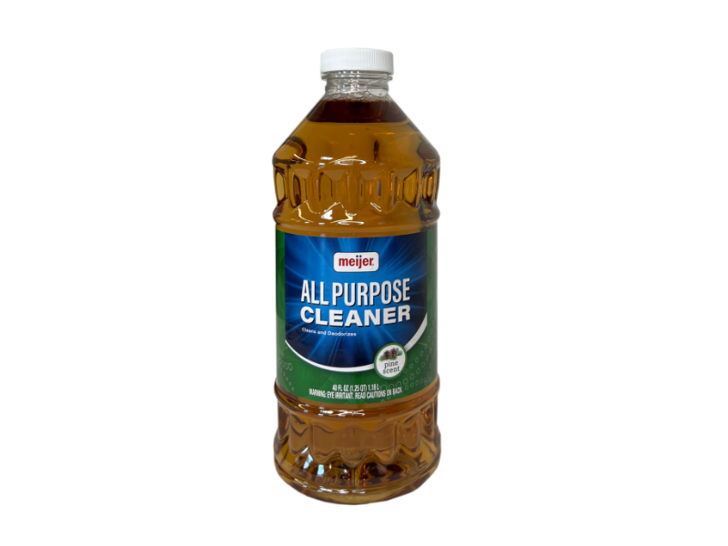 Meijer All Purpose Liquid Cleaner delivers a thorough clean on various surfaces, including no-wax floors, without leaving a dull film. Infused with a fresh pine scent, it's effective for cleaning and deodorizing.